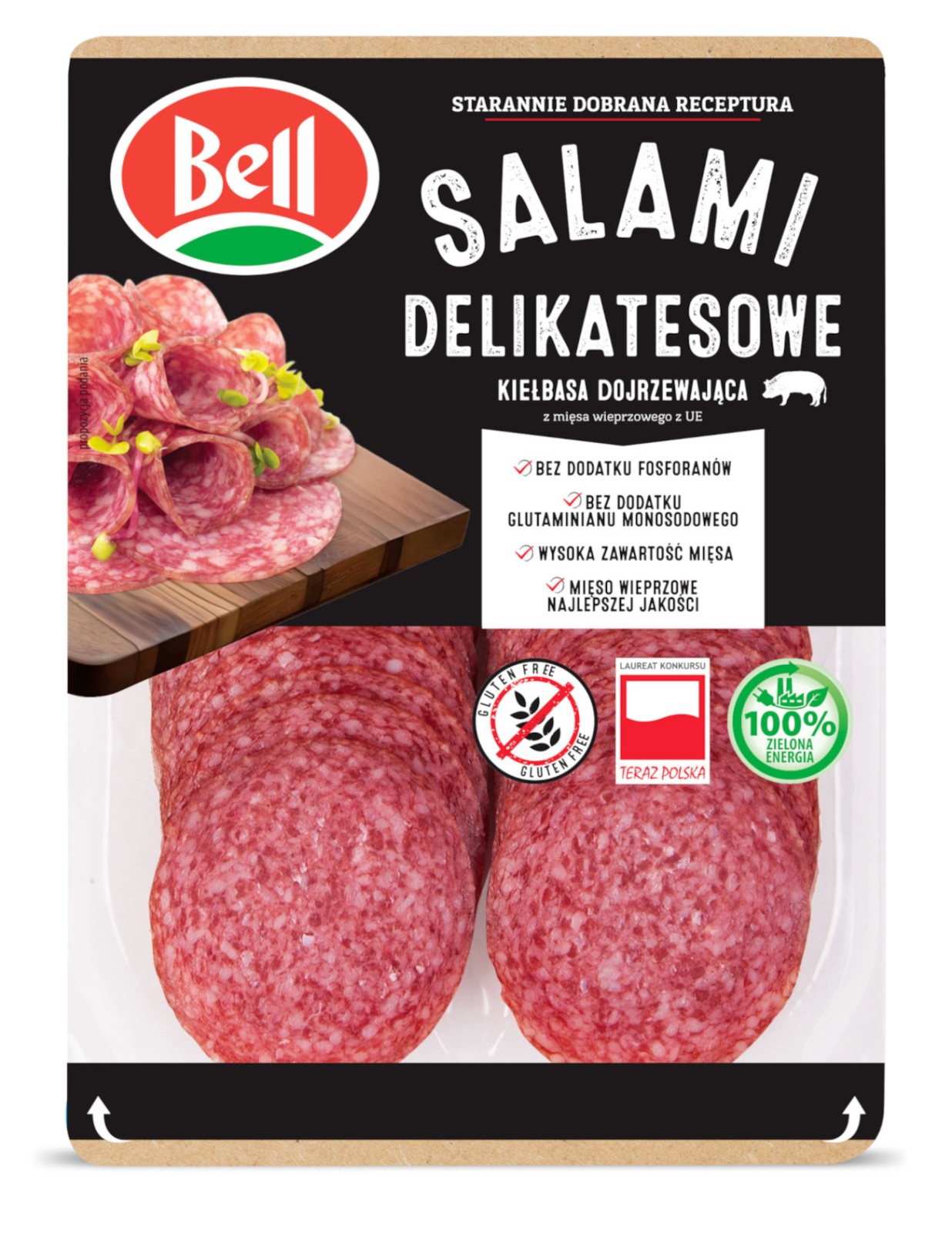 Salami Delikatesowe Bell to wyjątkowa kompozycja starannie dobranego mięsa i aromatycznych przypraw. Nasze salami dojrzewa w kontrolowanych warunkach, aby osiągnąć pełnię smaku. Jego delikatna struktura i wyrazisty aromat sprawiają, że doskonale odnajduje się zarówno w klasycznych kanapkach, jak i wykwintnych deskach serów czy tapas. Każdy plasterek to gwarancja wysokiej jakości i niezapomnianego doświadczenia kulinarnego. Spróbuj i poczuj różnicę!